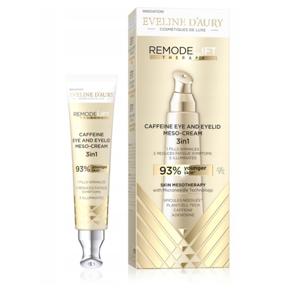 W badaniach udowodniono*, że Eveline D’Aury RemodeLift Therapy Kofeinowy mezo-krem pod oczy 3w1 przy regularnym stosowaniu:
