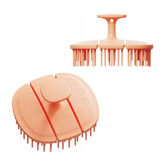- Innowacyjna struktura potrójnego zagięciaSpecjalnie zaprojektowana szczotka dopasowuje się do kształtu każdej skóry głowy, zapewniając dokładne mycie i masaż nawet w trudno dostępnych miejscach.